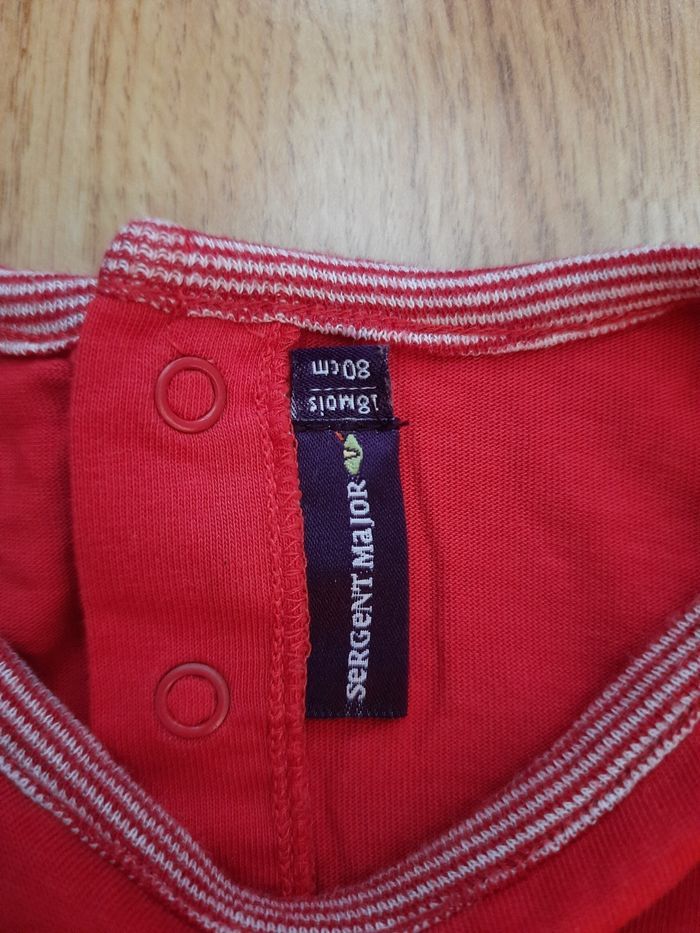 Joli tee shirt taille 18 mois 80cm. Un tout petit peu de peinture manque sur 1 pression (voir dernière photo) mais ça reste très très discret.