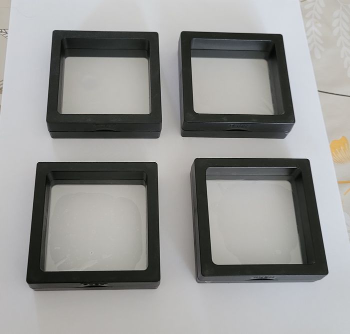 LOT DE 4 BOITES DE PROTECTION POUR BIJOUX lot de 4 boites de protection pour bijoux. Protege vos bijoux de la poussiere et les met en valeur . boite coloris noir avec film de protection . LOT DE 4 . Dimensions : 6,7 x 6,7 cms. ( dimensions interieures : 5,5 x 5,5 cms). Envoi rapide et soigné . VENDU SANS LES BIJOUX ! ( ils sont en vente dans ma boutique pro BEEBS )