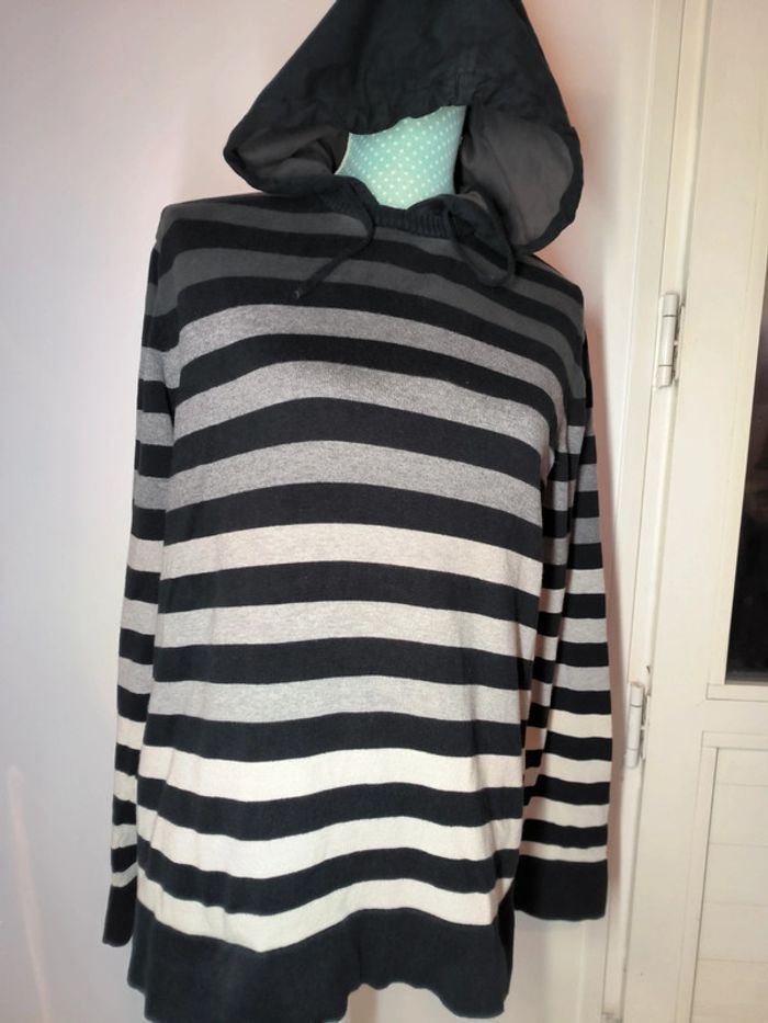 Pull rayé Noir Gris Blanc Taille L Celio 100% coton
