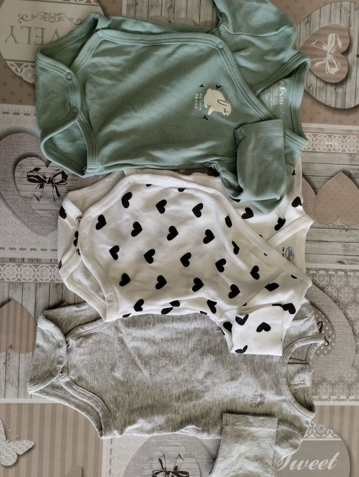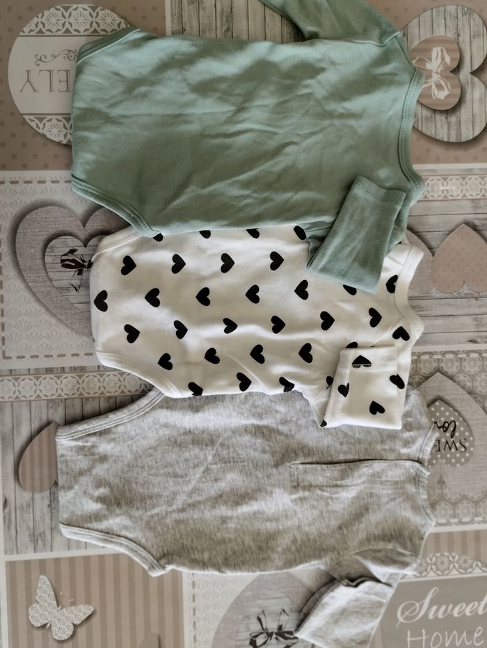 Bonjour, Je vend 3 bodys en taille 1 mois. En très bonne état. Très peu porté. Lot 3