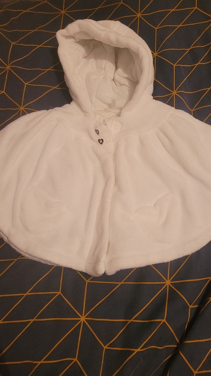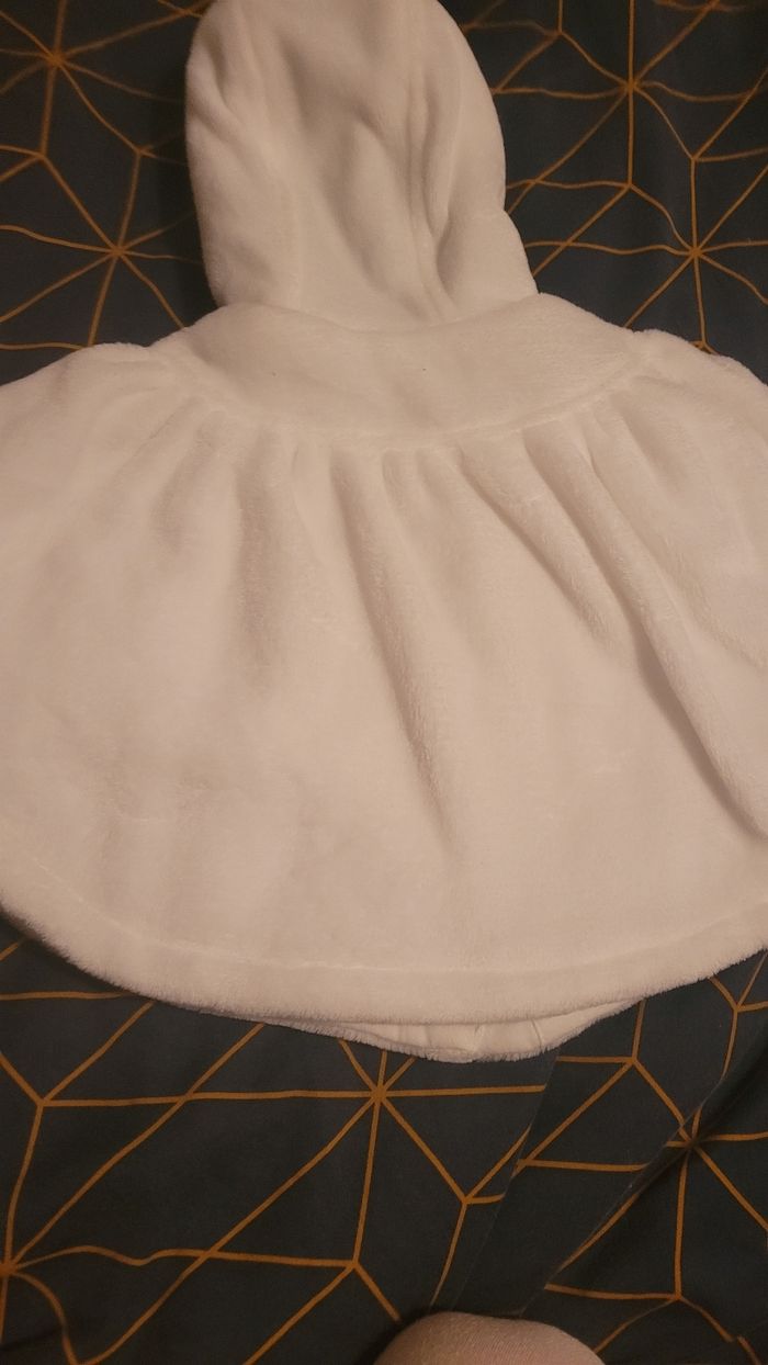 Très bon état en polaire et matelassée à l intérieur veste qui se ferme en poncho voir photo taille 60 cm