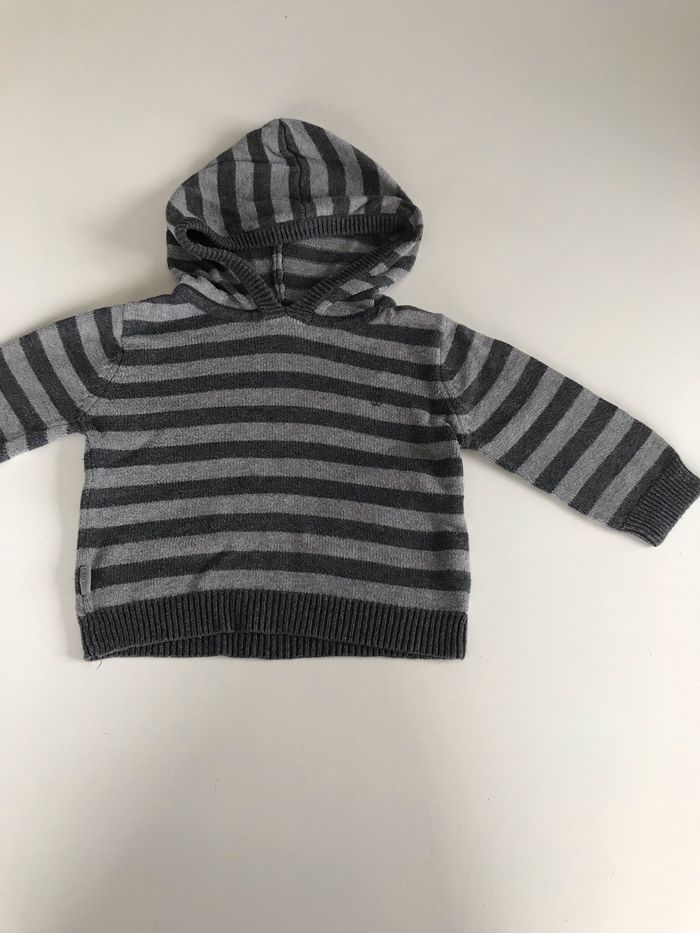 Pull bébé à capuche rayé gris 6 mois - photo numéro 1