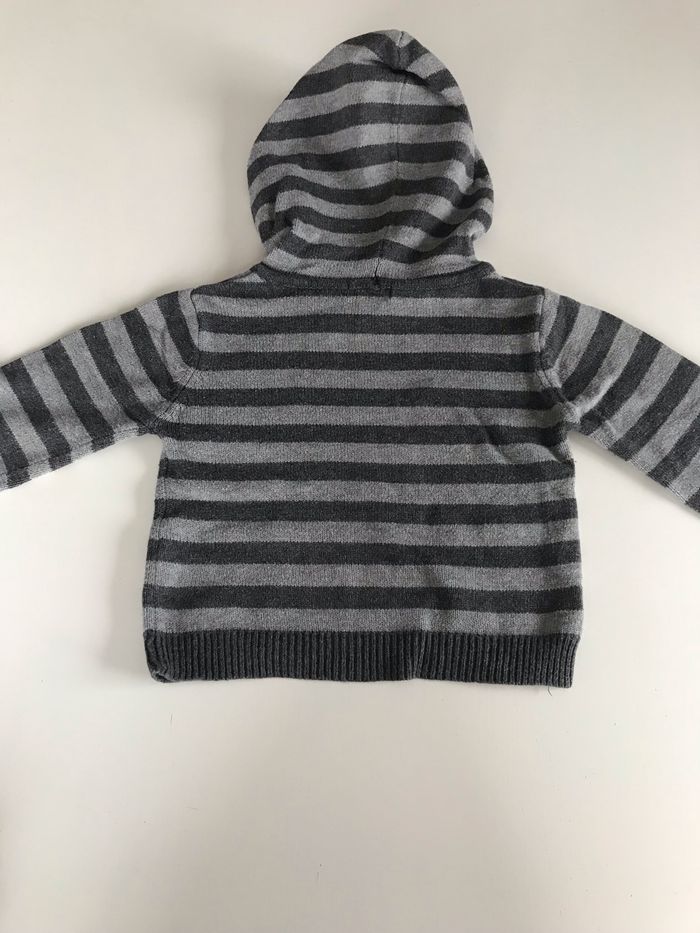 Pull bébé à capuche rayé gris 6 mois - photo numéro 2