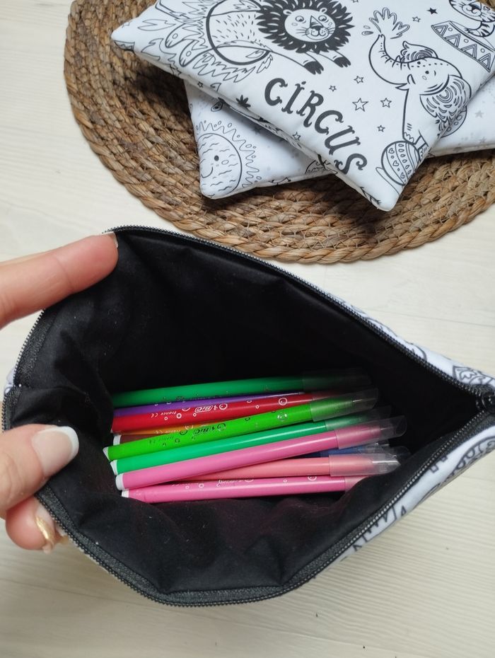 ✨ Occupez vos petits artistes en herbe avec nos trousses à colorier faites main. Les enfants peuvent laisser libre cours à leur imagination en coloriant la trousse selon leurs envies. Idéales pour les salles d’attente chez le médecin ou les longs trajets en voiture , an train ou en avion. Offrez aux enfants une activité ludique qui stimule leur créativité et leur concentration 🤓 Les trousses sont vendues sans feutres , vous pourrez facilement trouver des feutres lavables en grande surface. Elles sont lavables a 40°/ 60°. Coton et une couche de ouatine pour apporte du moelleux et de la tenue Dimension 18x23 cm D'autres motifs disponibles