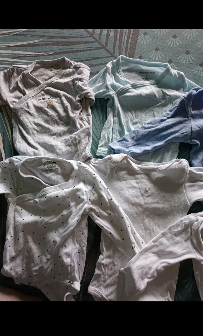 Lot de 24 bodys taille 3 mois Diverses marques, petit bateau, Kiabi, orchestra, sucre d'orge..