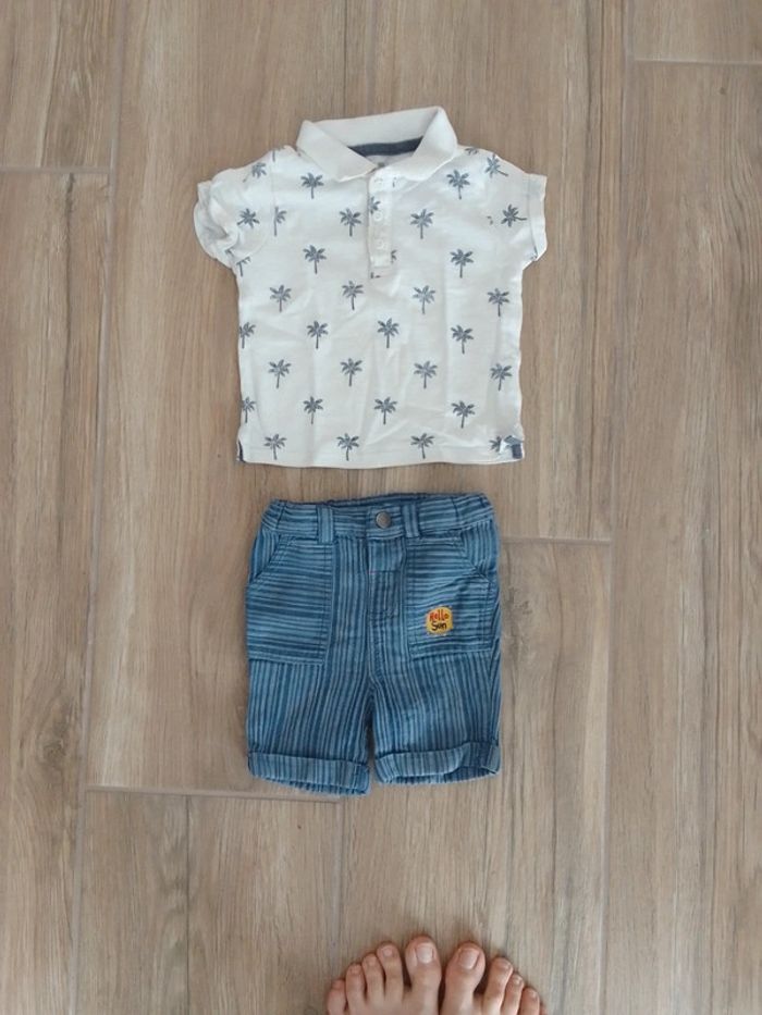 Ensemble comprenant un tee shirt Kiabi motif palmiers et un short orchestra bleu
