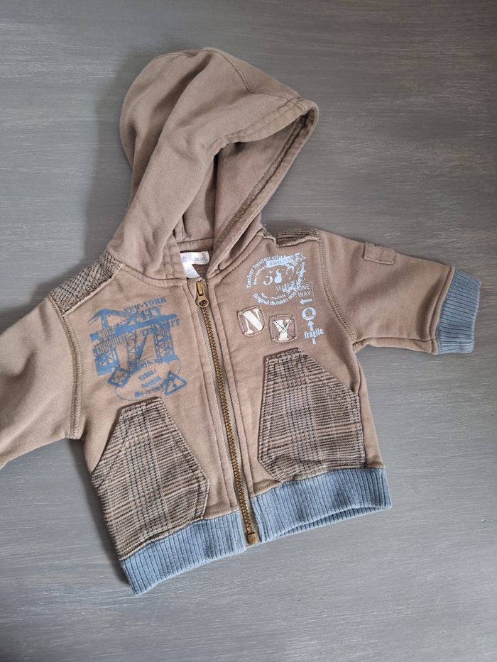 GARÇON 1MOIS N°962 veste zippé , capuche Taupe , bleu 100% coton Taille 1 mois Kitchoun 3€ #kelly_garçon1mois