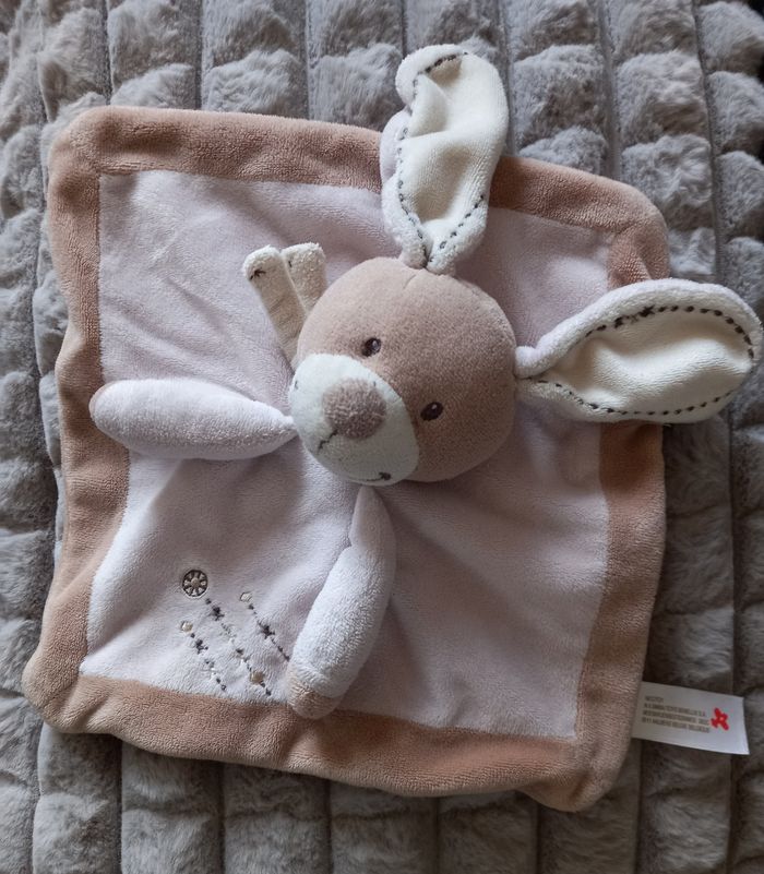 Doudou carré plat Lapin rose et beige - croix - Simba - photo numéro 1