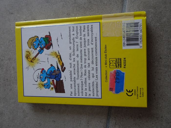 Livre les schtroumpfs dans la pierre céleste. Première bibliothèque des enfants. Collection mini club étoile, éditions hemma. Livre ancien, année 1996.
