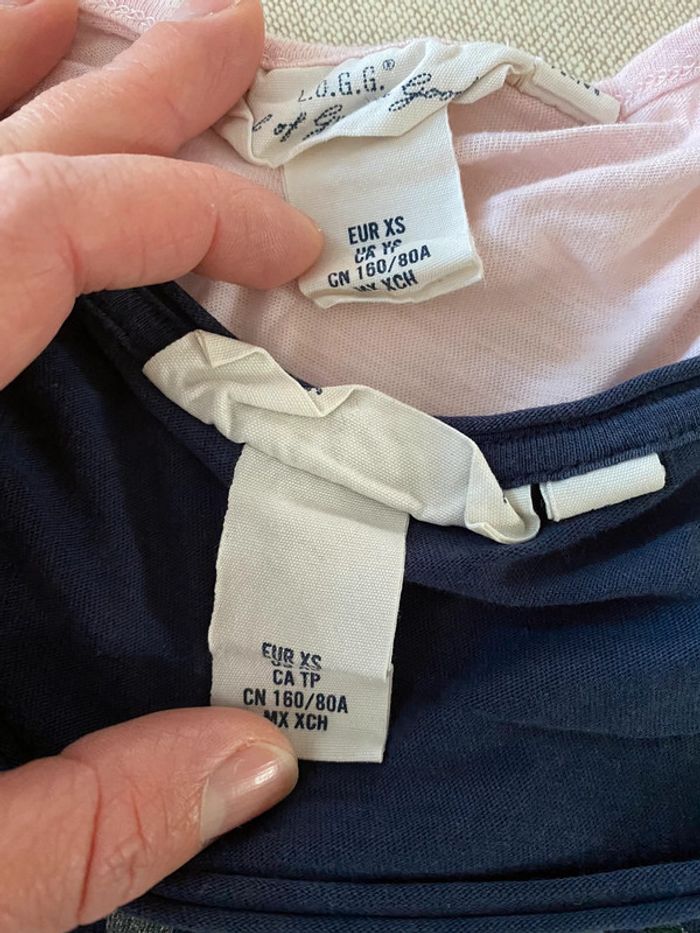 Lot de 3 tee shirt le bleu beaucoup porté et le rose jamais porté. Petits trous voir photo.