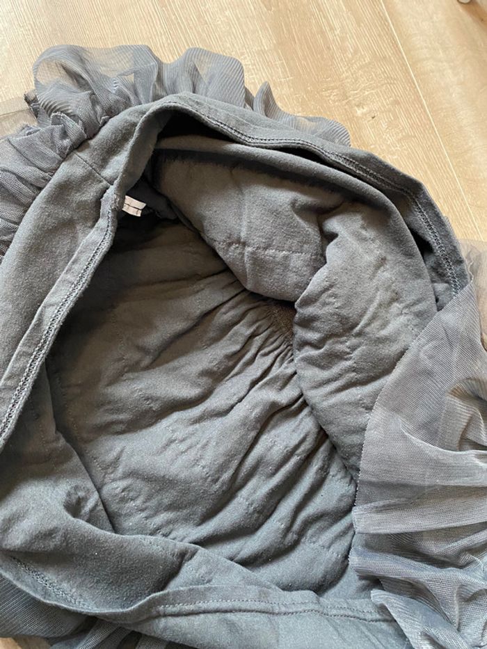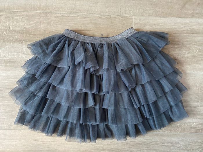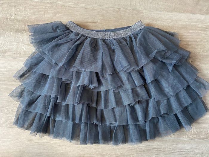 jupe courte à volants très peu porté comme neuve. taille 8 ans. élastique pailleté à la taille.