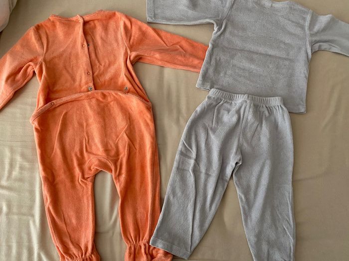 lot de 2 pyjamas porté mais en très bon. 1 pyjama 1 pièce de chez orchestra 1 pyjama 2 pièces de chez Carrefour taille 18 mois