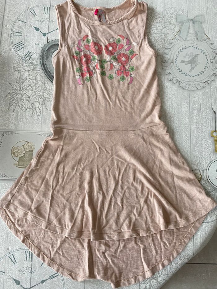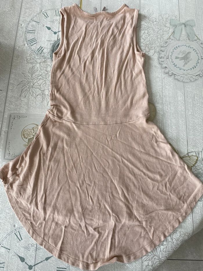 Robe porté mais en bon état. Quelques paillettes restantes au niveau du dessin. Resserrer un peu à la taille. La robe est plus longue derrière que devant ce qui est fait exprès. Taille 12 ans mais taille petit idéal pour un enfant qui fait 8/10 ans.