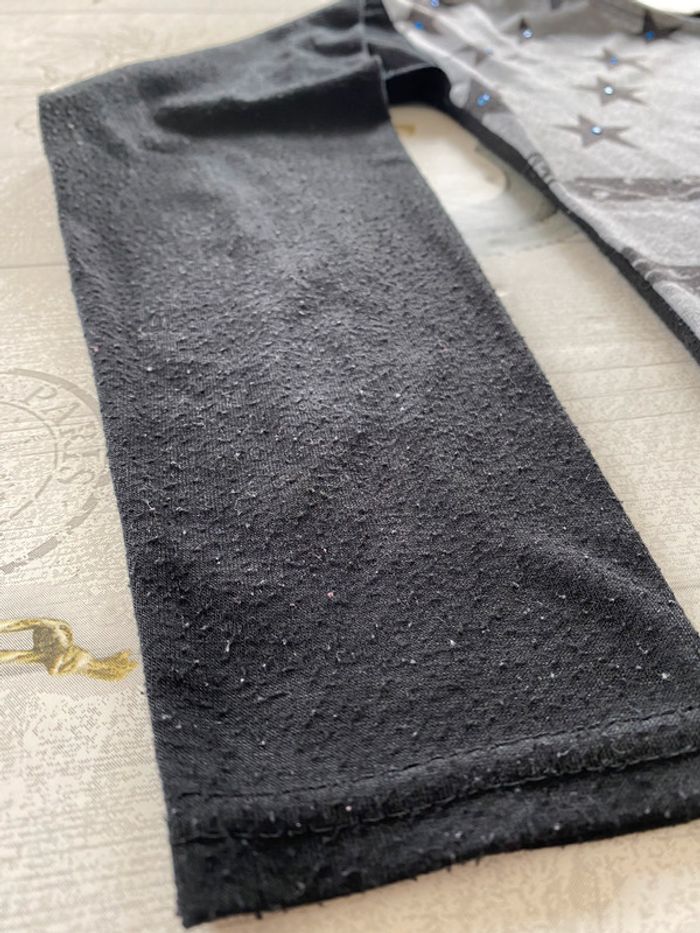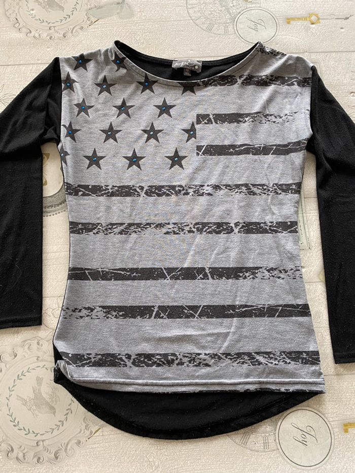 T-shirt noir à manches longues. beaucoup porté. Présence de pelotes voir photos.