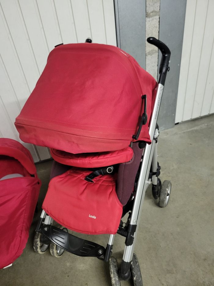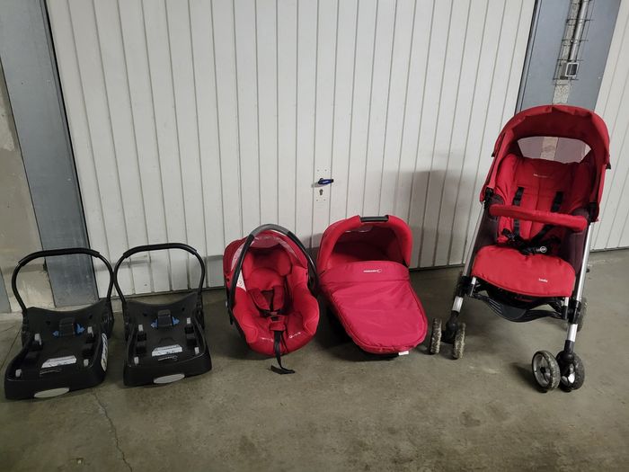 Vend trio bébé confort en parfait état - châssis poussette avec panier de rangement - assise avec grande capote imperméable + habillage de pluie Possible de mettre face à la route ou aux parents - maxi cosy entièrement déhoussable - nacelle avec matelas - lot de deux bases voiture (se fixe avec la ceinture, il reste juste a clipper le maxi cosy). A venir chercher sur la chapelle sur Erdre (Loire Atlantique) Pas d'envoi