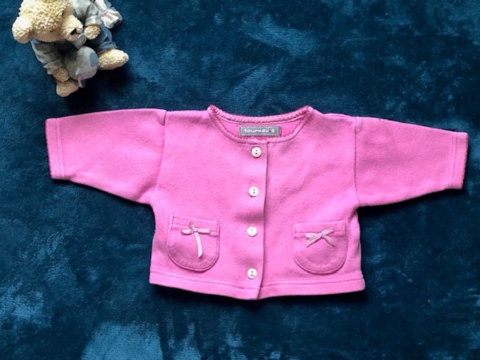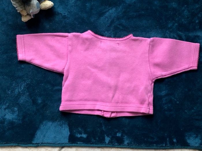 Peut se porter en gilet ou sous un gilet Rose vif Jolies finitions avec des noeuds vichy rose sur les poches 100% coton Très bon état #anso92000bébé3mois