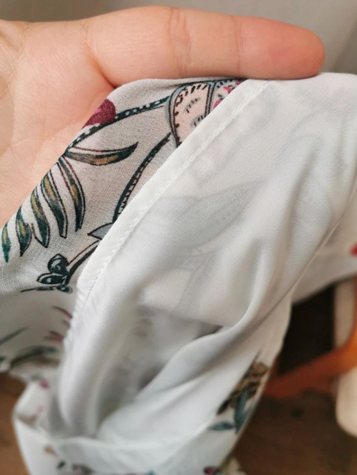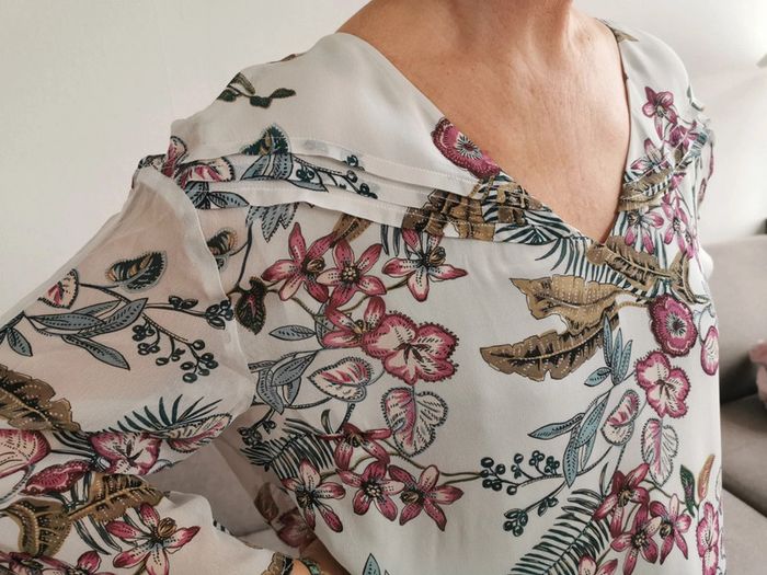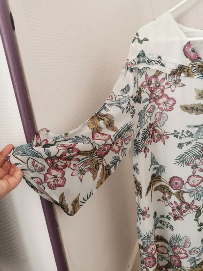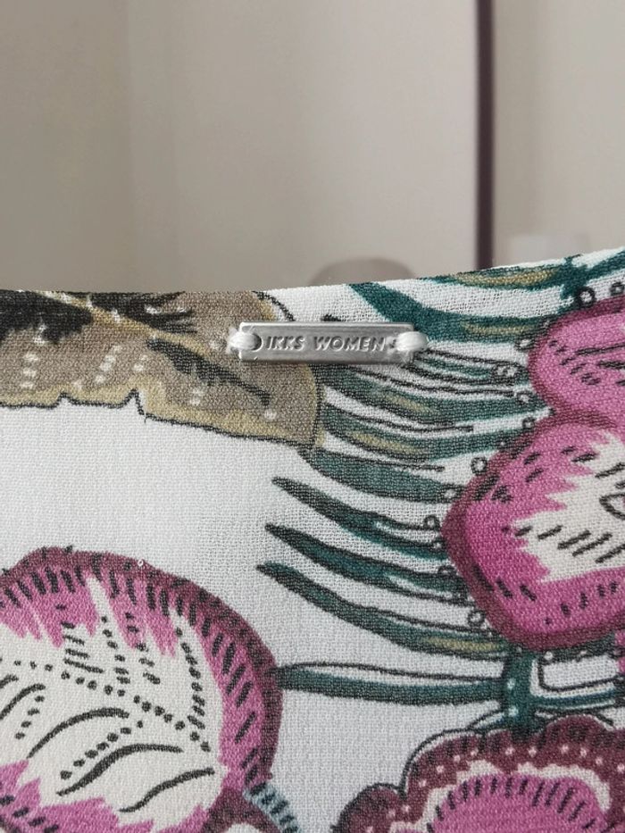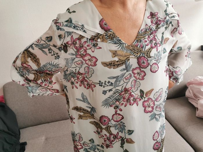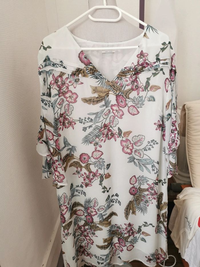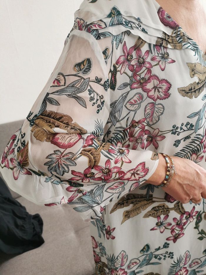 Robe tunique IKKS matière fluide et volante Manches 3/4 avec volants, col V, doublure intérieur Imprimé floral Neuve