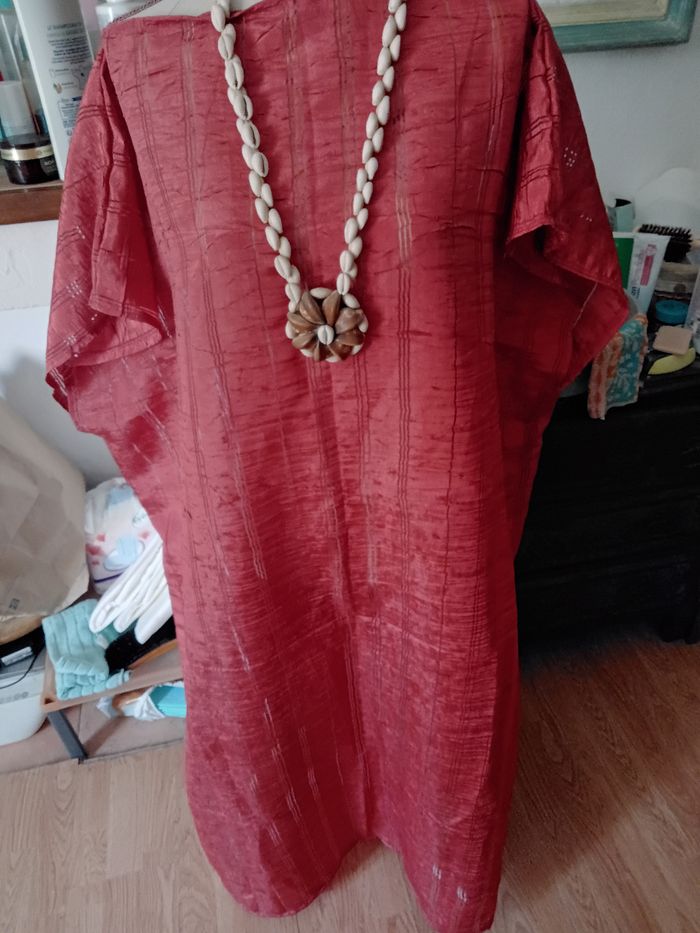 Robe de plage ou d'intérieur faite main, couleur rouille transparente. Taille unique. Vendu sans le collier.