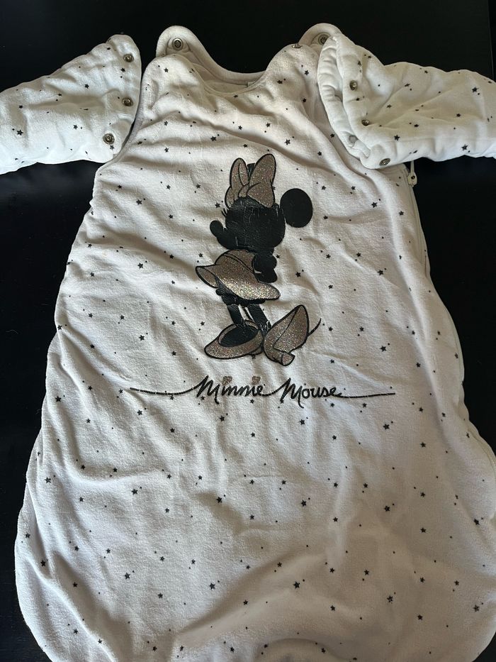 Bon état. Petite marque d’usure au niveau de la tête de Minnie. Taille 0/6 mois.