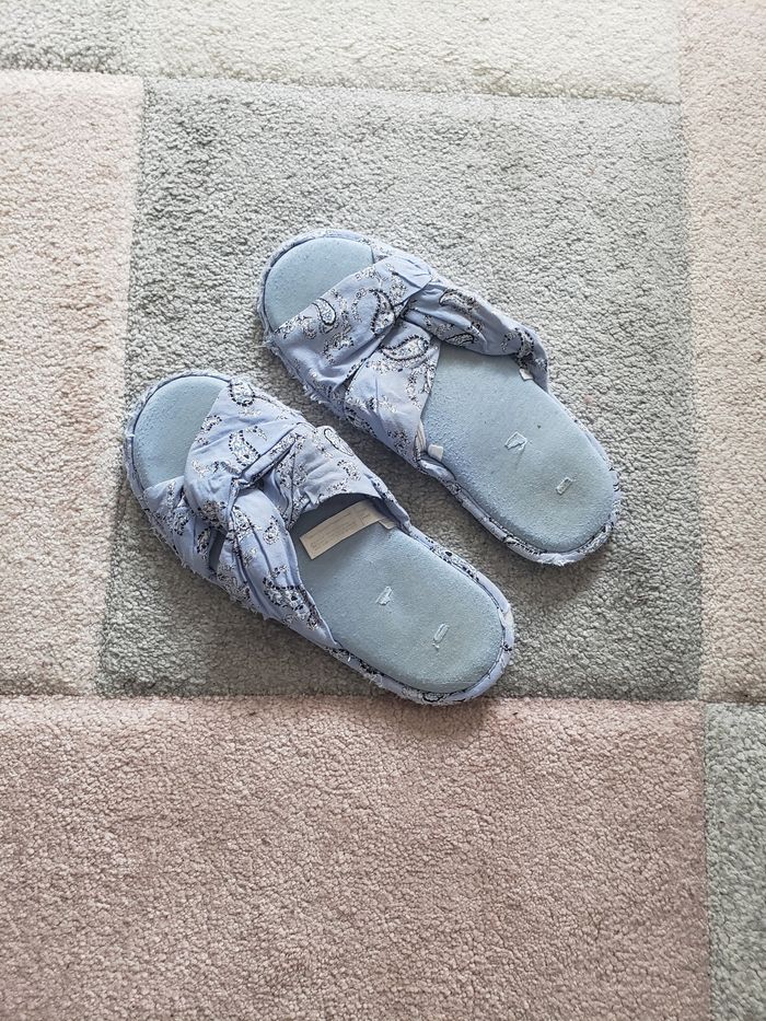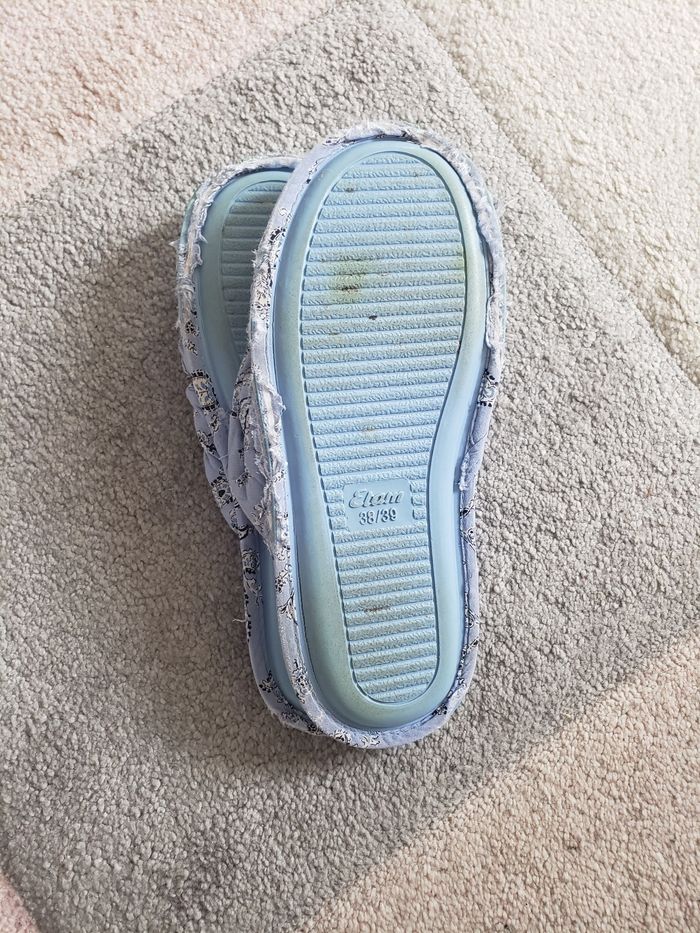 Claquettes d'intérieur (chaussons) Pointure/Taille 38/39 ou 38,5 Coton molletonné bleu Lavables en machines Marques d'usures