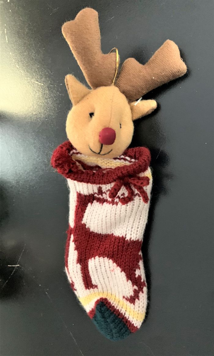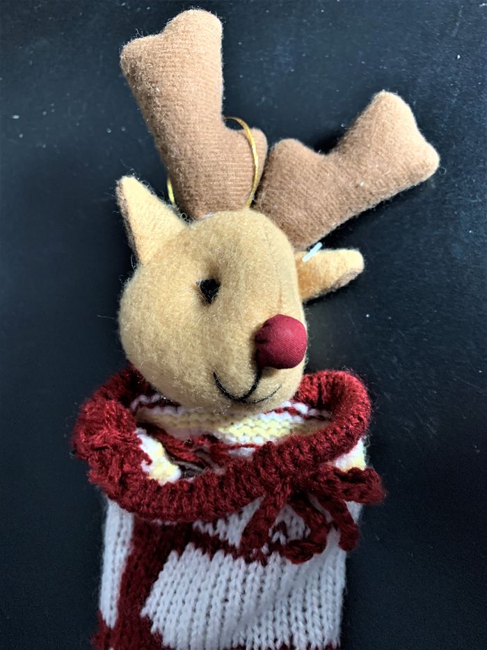 Chaussette de Noêl renne en velours ras et maille