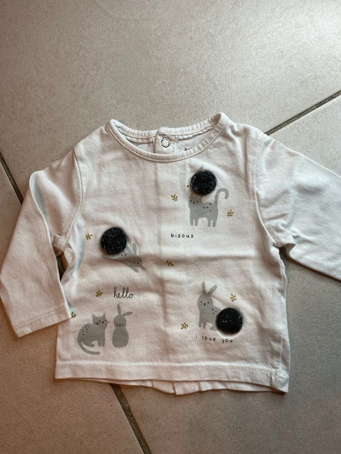 Je vend ce tee-shirts longue manche en excellent état Taille 1 mois #bébéfille #kiabifille #naissance