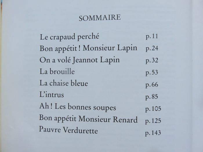 💰 PRIX FIXE ⚠️ ÉTAT : Très bon état ⚠️ DÉTAILS : Couverture cartonnée 158 pages ⚠️ RÉSUMÉ : Retrouvez 9 histoires dans un même recueil - le crapaud perché - Bon appétit ! Monsieur Lapin - On a volé Jeannot Lapin - La brouille - La chaise bleu - L'intrus - Ah ! Les bonnes soupes - Bon éppétit Monsieur Renard - Pauvre Verdurette 📦 LIVRAISON : Envoi ou remise en main propre sur Lyon