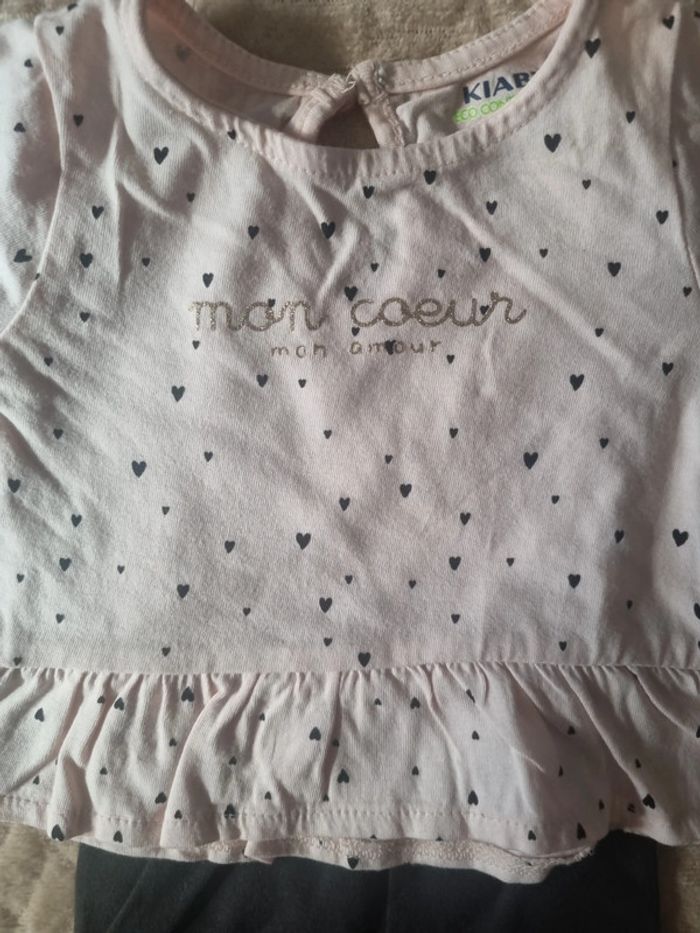 Éco conception Coton 100% bio Tunique rose pâle et petits cœur Leggings gris foncé Cliquez sur le # pour accéder à tout mes articles en 1 mois. #ks661mois