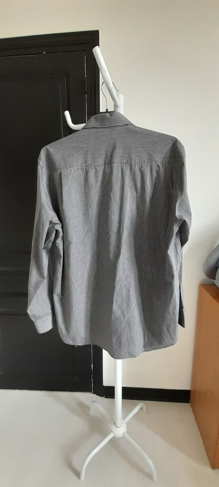 Chemise taille XL Marque C.A.N.D.A Couleur grise à rayures Attache central boutons 1 poche poitrine gauche 62% coton et 38% Polyester Quasi neuf porté maxi 1 fois
