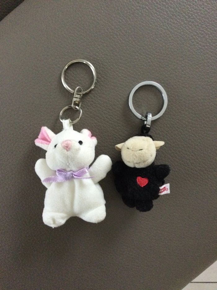 Lot de 2 porte clé peluche. Vache et souris. Très bon état. Possibilité d’un achat à l’unité.