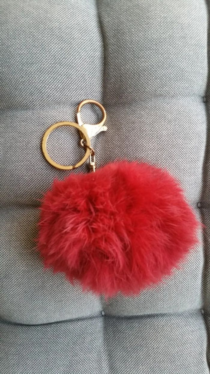 Porte-clé gros pompon rouge très doux. Le métal est un peu rouillé.