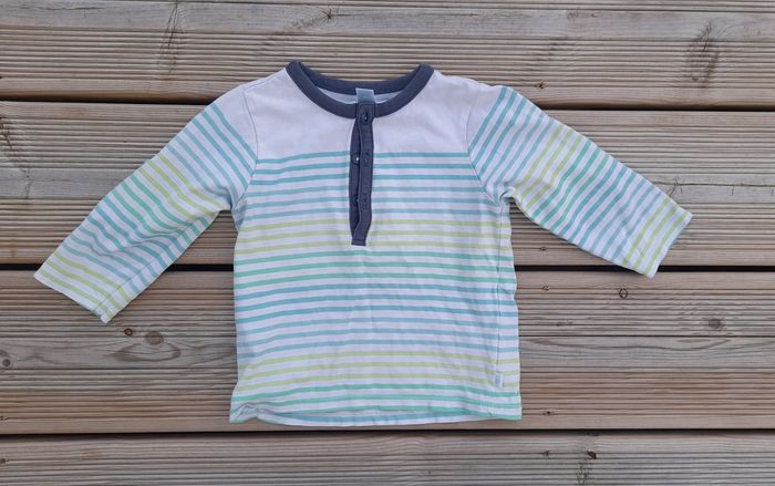 T-shirt manches longues A rayures Col boutonné