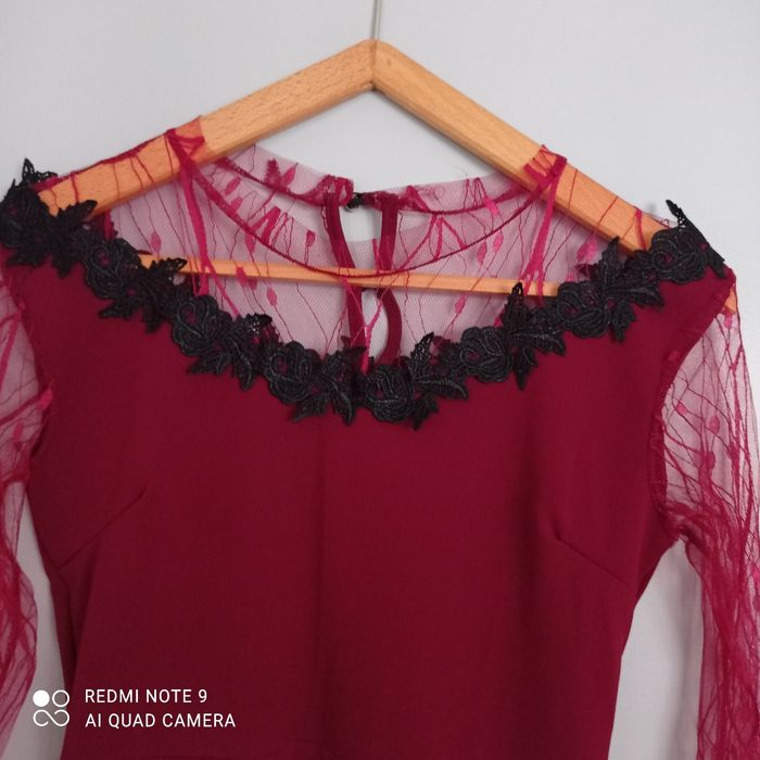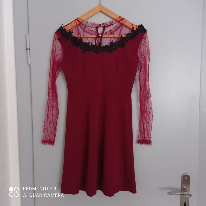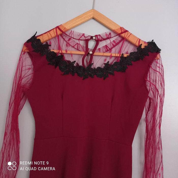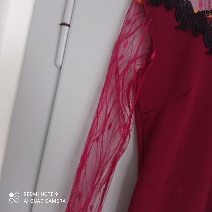 Manches en dentelle. Liseré de fleurs noires. Taille estimée. Mesures sur demande.