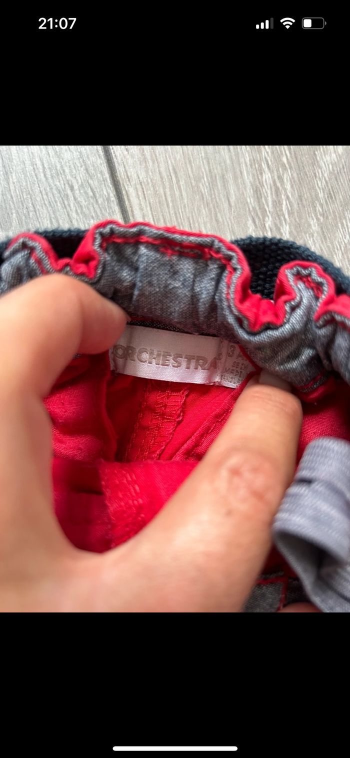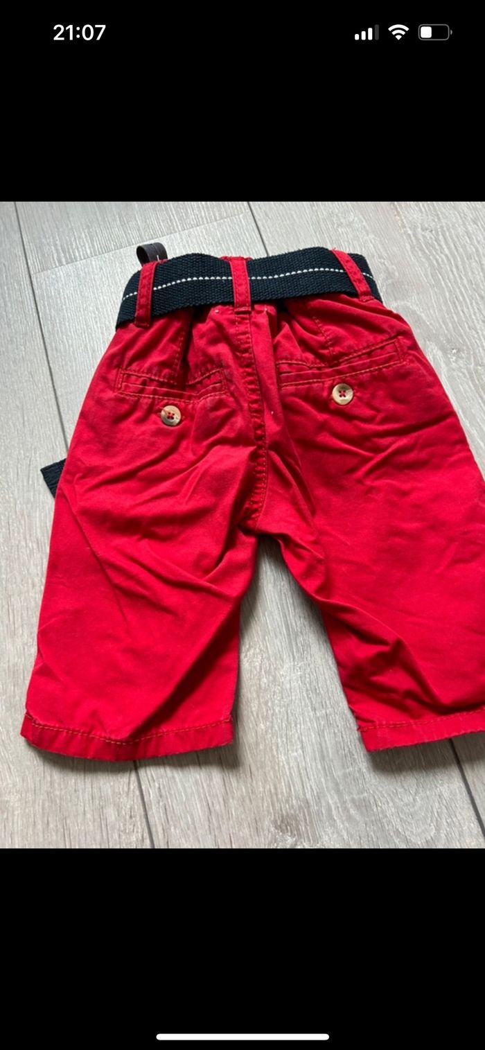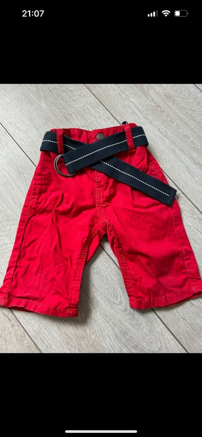 Bermuda garçon rouge Avec ceinture bleu Taille bien Taille serrage à l’intérieur Très bon état Peu servi