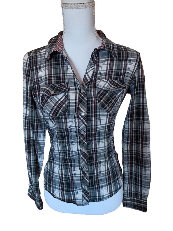 Chemisier cintré carreau bouton pression Cache cache Taille 1 67 % coton 29 % polyester 3 % élasthanne