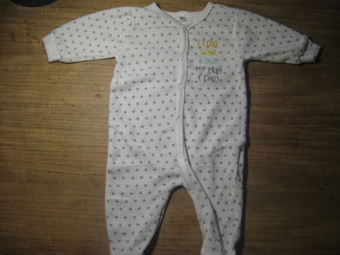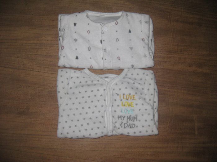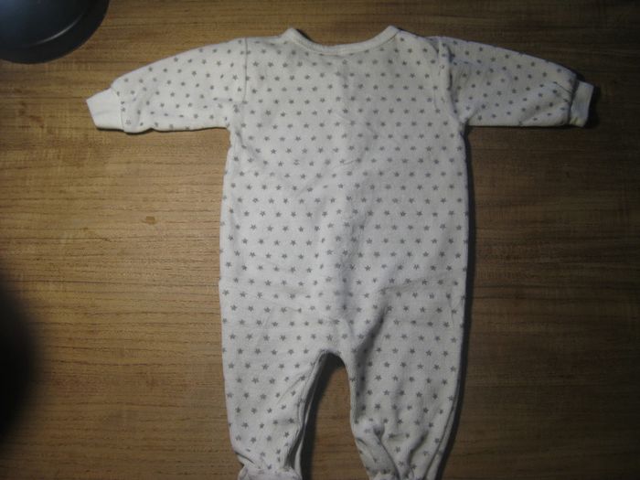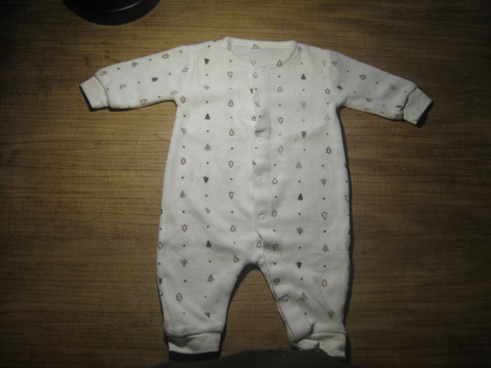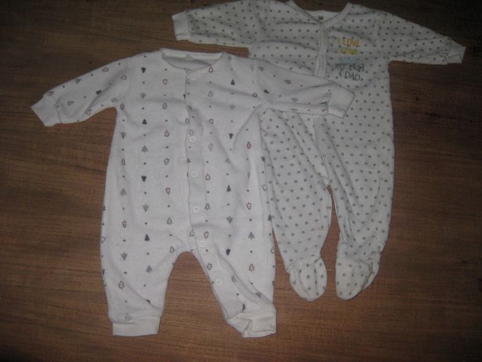 2 pyjamas blanc mixte fermeture pression a l'avant 1 pyjamas avec pied et 1 sans très bon état