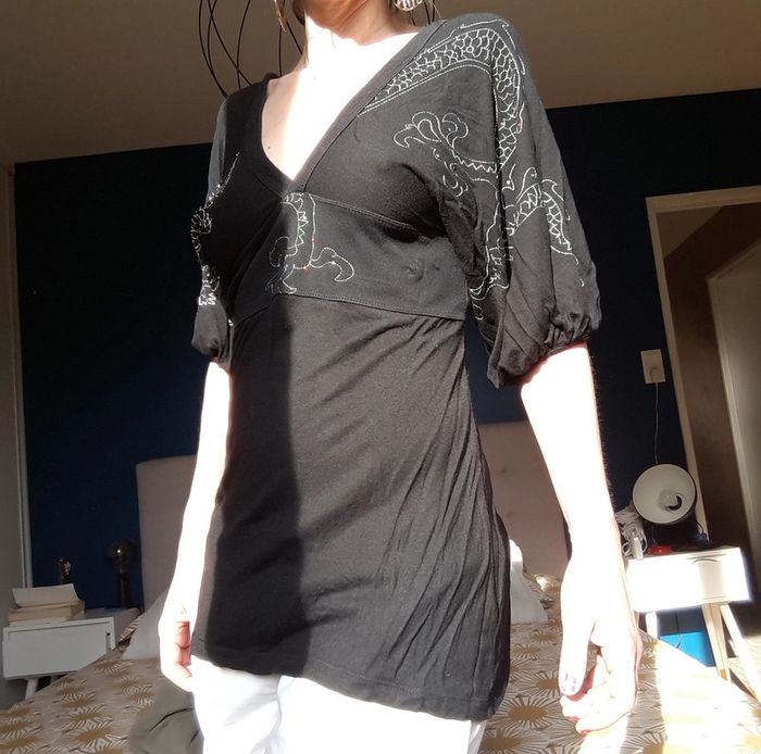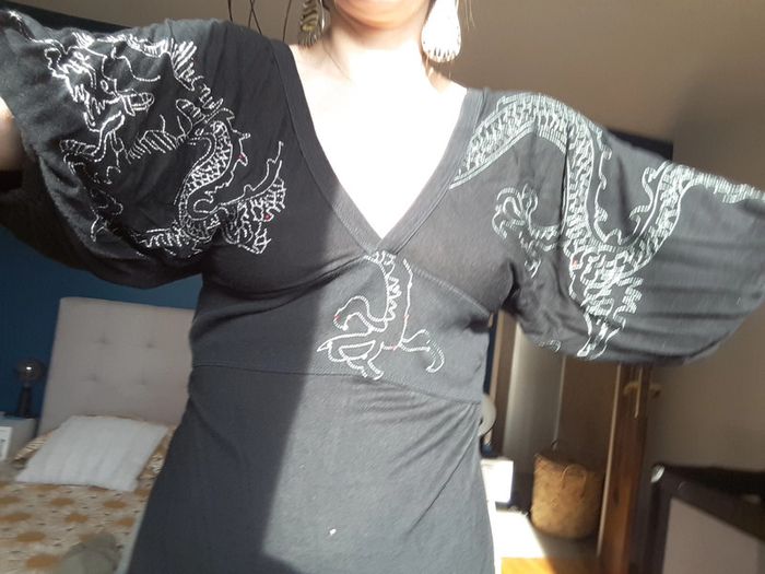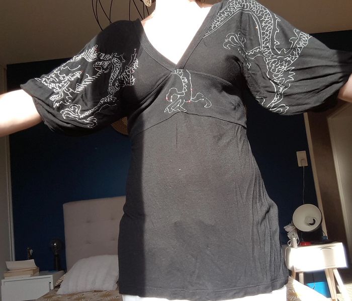 Tee shirt noir manches bouffantes motif dragon - photo numéro 4
