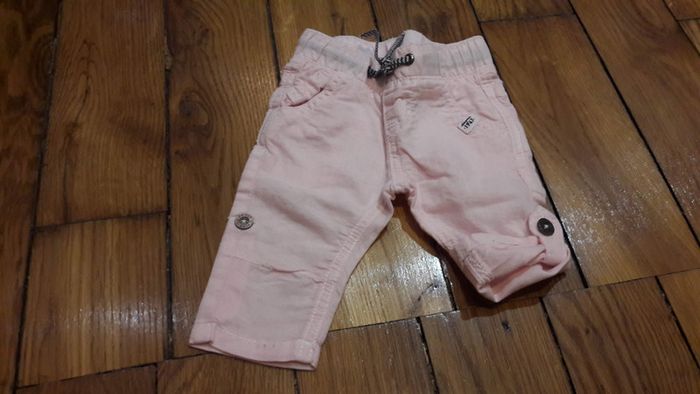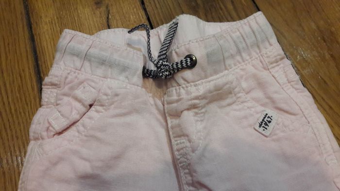 Pantacourt rose clair. Marque Gémo. Fermeture à la taille avec un cordon. On peut retrousser les jambes. La #réduction est activée sur les lots. N'hésitez pas à visiter mon dressing. #lunadrak_fille_0_3m #lunadrak_3mois_fille #lunadrak_pantalon_fille_3m