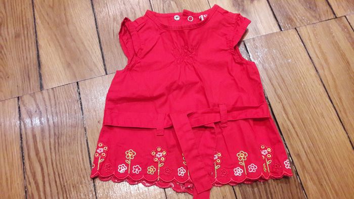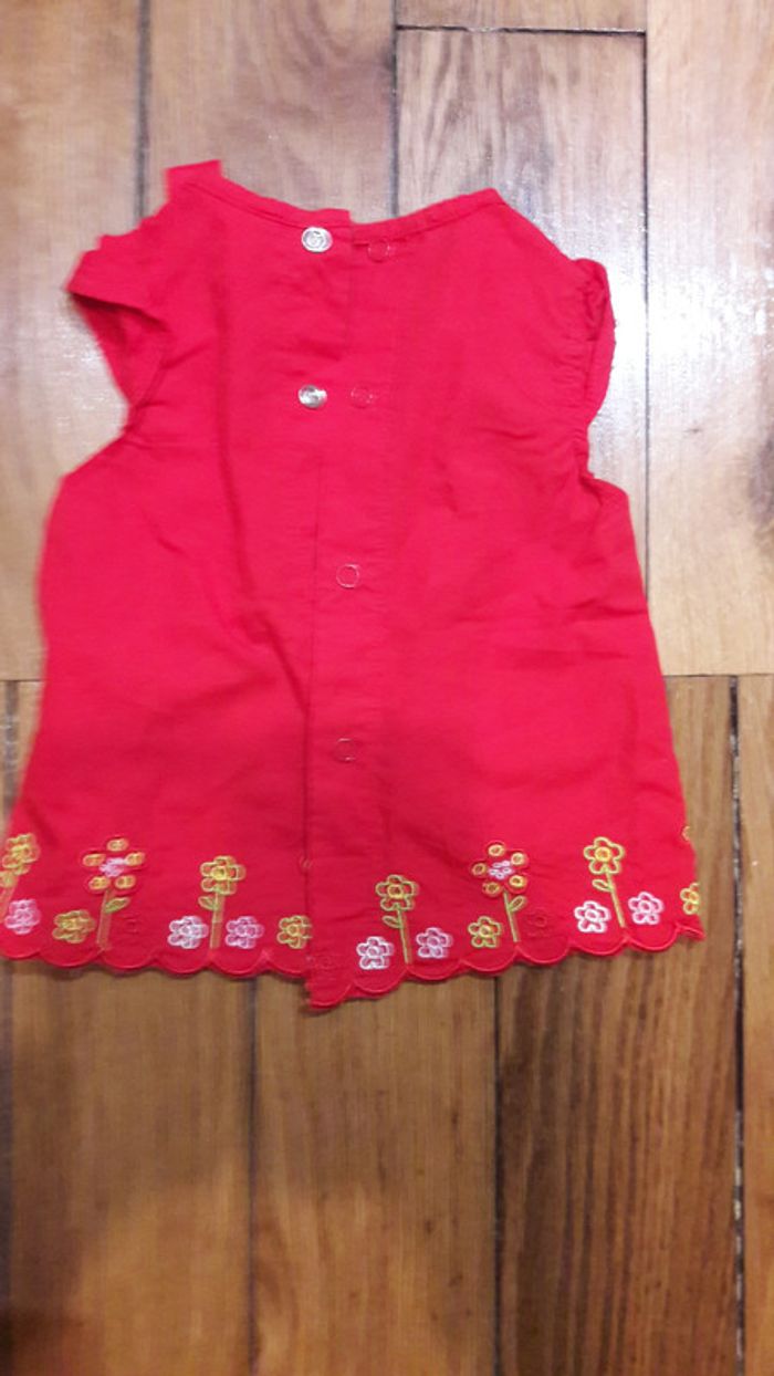 Comme neuf. #Chemisier rouge brodée de jolies fleurs, noué autour de la taille. La #réduction sur les lots est activée, n'hésitez pas à visiter l'ensemble de mon dressing. #chemisier #ceinture #broderie #noué #fleur #lunadrak_3mois_fille #lunadrak_tshirt_fille_3m #lunadrak_fille_0_3m