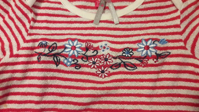 Petit haut manches longues rayé rouge et blanc avec motif floral sur le devant. Tissu doux. La #réduction sur les lots est activée, n'hésitez pas à visiter l'ensemble de mon dressing. #lunadrak_18m_fille #lunadrak_18m_tshirt_fille