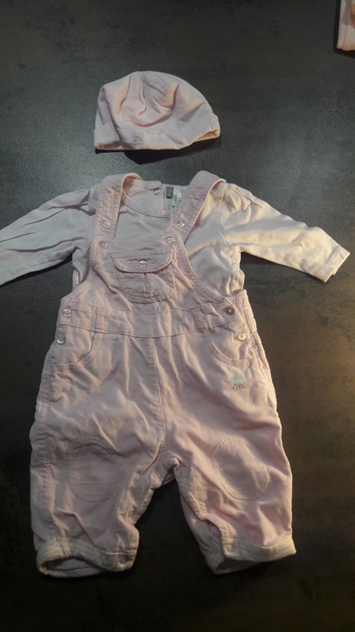 Ensemble salopette et t-shirt manches longues  3 mois fille