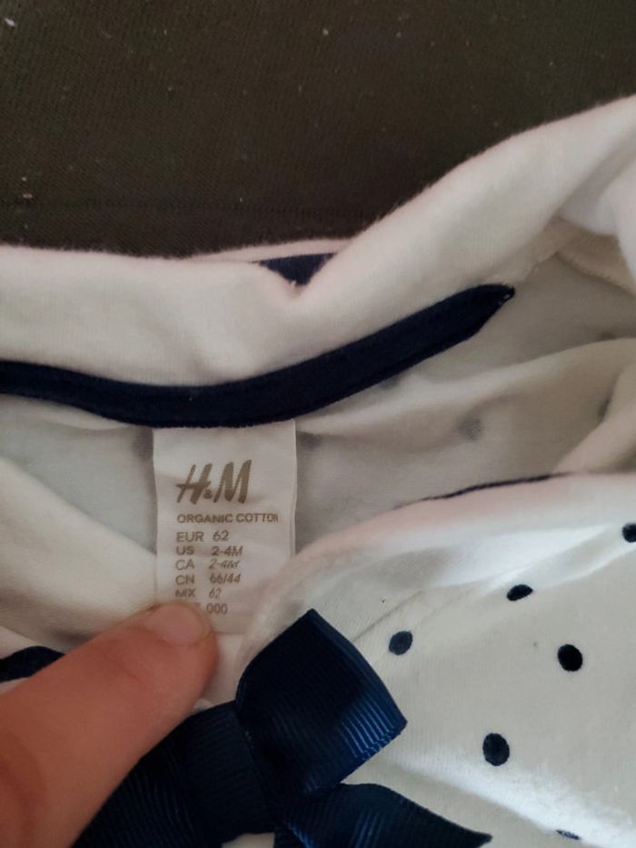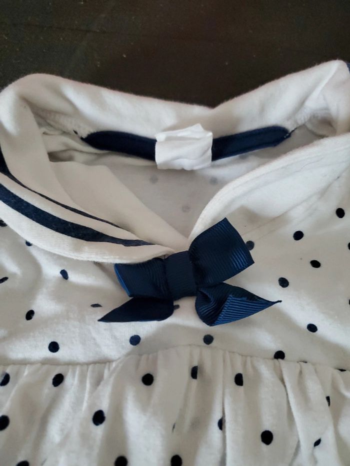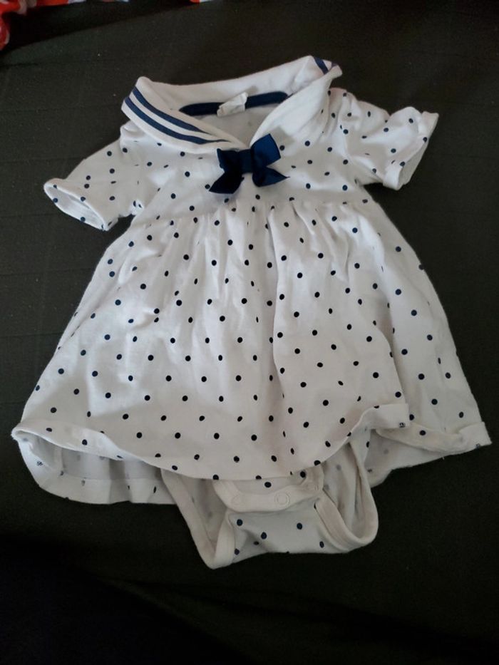 Robe blanche h&m marin avec pois marine taille 2/4mois bodies intégré