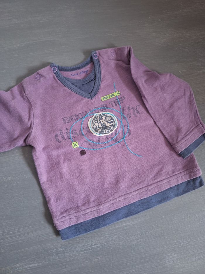 GARÇON 9 MOIS N°745 Maillot lm Bleu , lilas , imprimé Pression aux épaules 100% coton Taille 9 mois Sucre d orge 1,50€ #kelly_garçon9mois