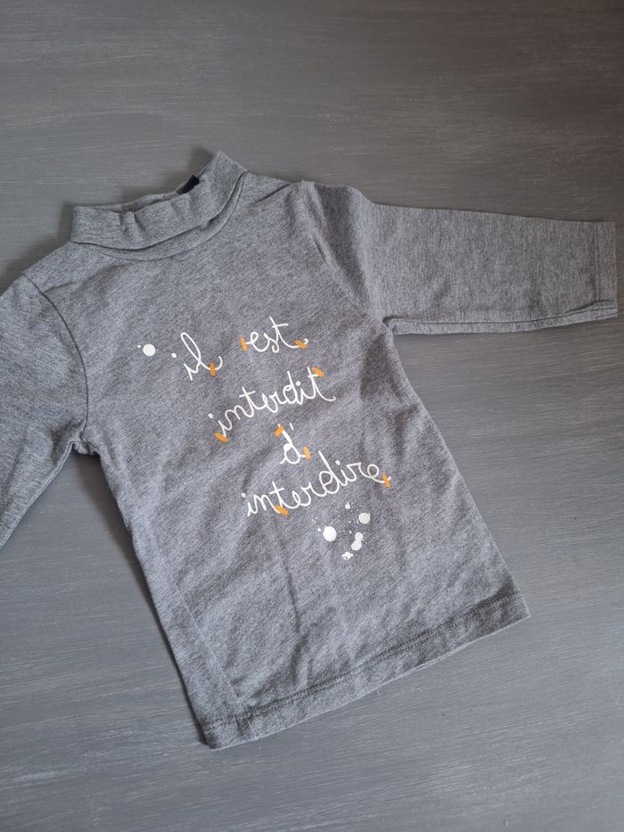 GARÇON 9 MOIS N°747 Sous pull gris ,imprimé Pression au dos 93% coton 7% elasthane Taille 9 mois Kiabi 2,50€ #kelly_garçon9mois
