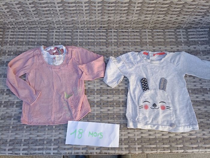 Lots de deux pull taille 18 mois Un orchestra rose pâle et un tex avec motif petit lapin. Réserver