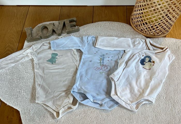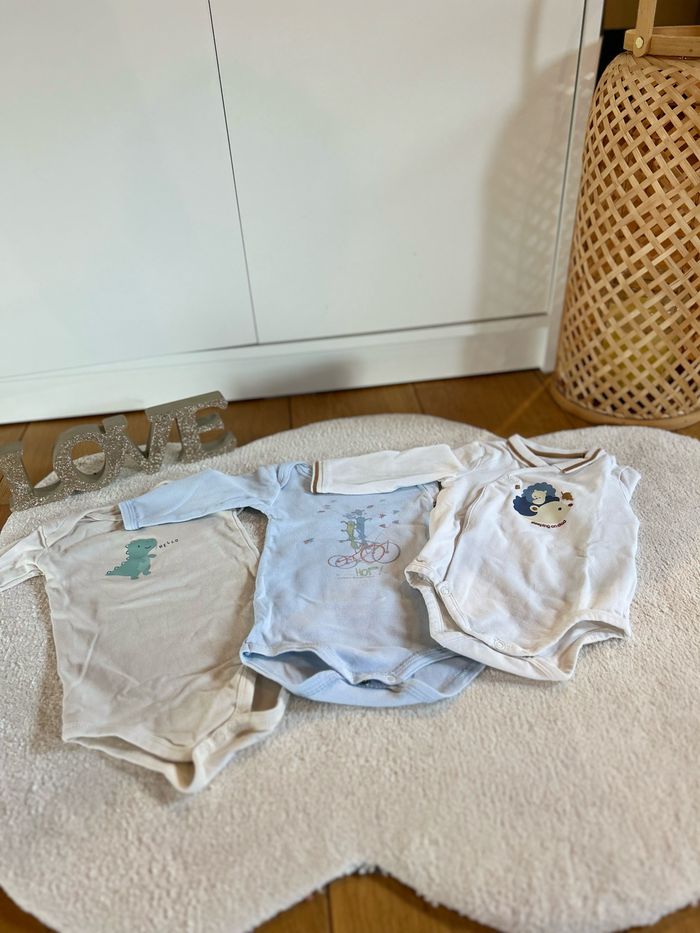 Lot de bodies manche longue Taille 3 mois Excellent état Marque : petit bateau et obaibi