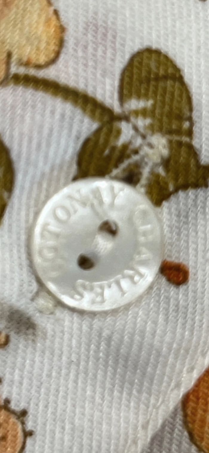 Je vends une chemise De la marque Charles Cotonay Chemisier à manches longues, Ravissant coton, pour enchanter ce début de printemps, Fond blanc, imprimé de fleurs, dans des tonalités gaies, fraiches et printanières. Il y a un bouton supplémentaire de la marque sur l’étiquette de composition, chaque bouton est estampillé du nom de la marque Le côté dos est plus long que le devant D’autres photos, renseignements sur Demande Les Mesures sont données sur Photos Chemise liberty taille 40 Charles Cotonay Choup 130 oran29