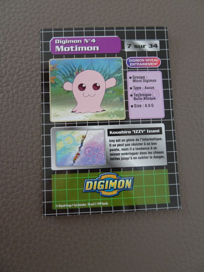 Carte digimon vintage et ancienne années 1999/2000, carte recto verso, brillante, izzy et motimon, numéro 4. Très bien conservée. Niveau entraînement. J'ai d'autres annonces.