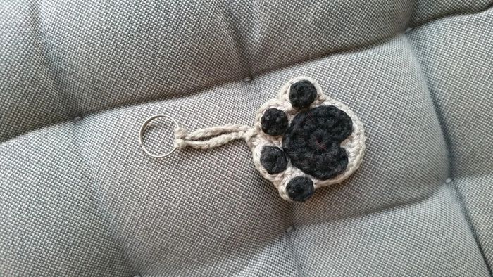 Porte-clé en crochet tricot en forme de coussinet pattes de chat. Il s'ouvre. Très bon état.