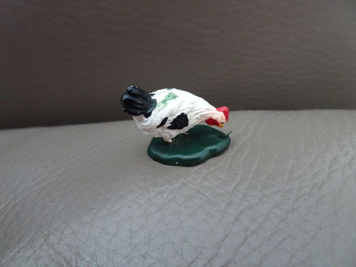 Figurine petite poule qui picore, en plastique dur, type starlux clairet jim acedo, en très bon état. 2 cm. Animaux, animal, ferme